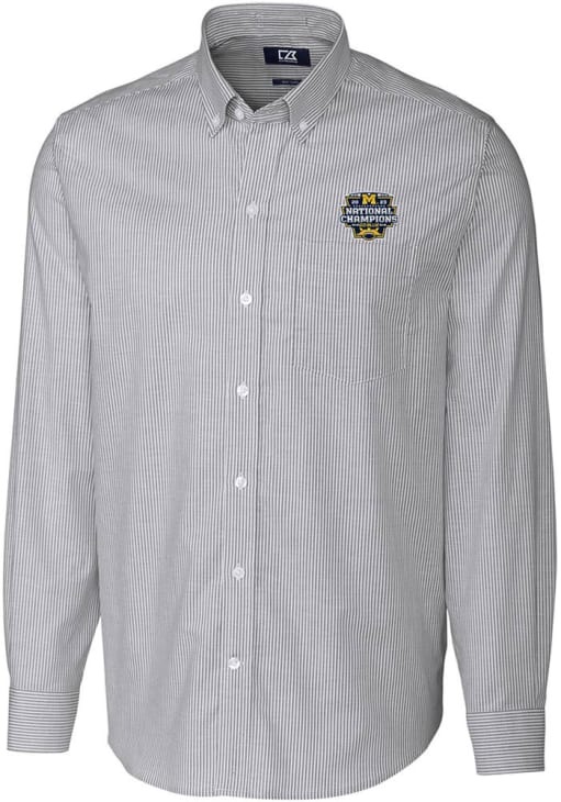 Show your Wolverines spirit show in the office with this Michigan Wolverines Dress Shirt! Embrace your team spirit and showcase it proudly in this Mens Charcoal 2023 College Football National Champions Stretch Oxford Stripe Long Sleeve Long Sleeve Button Down Shirt. This Long Sleeve Dress Shirt features a stripe pattern.