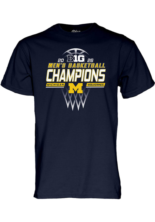 Display your team spirit with this remarkable Michigan Wolverines Blue 84 Navy Blue 2026 Big Ten Men's Basketball Regular Season Champions Locker Room Short Sleeve T Shirt! The Michigan Short Sleeve Tee showcases a screen print of team graphic on front chest that truly sets it apart. Stand out from the crowd and proudly declare your allegiance to the Wolverines with this exceptional Navy Blue Michigan T Shirt. Go Michigan!