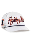 Product Details Product Details 47 Overhand Mesh HitchFront team script5 panel pinched crownSide 47 LogoAdjustable closureCOTTON/POLY BLENDCurved BillLow CrownStructuredWipe clean with cloth or cleaning kitImported Officially Licensed This White Fighting Illini Adjustable Hat features a front embroidered team logo on a structured crown with precurved visor and trucker mesh.