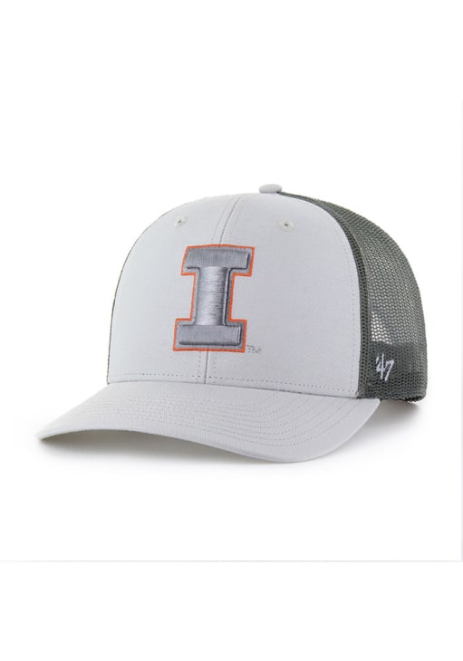 Product Details Product Details 47 Brand Trucker Gray OutlineFront embroidered team logoMatching crown and visorTrucker mesh on back and side panelsSide 47 logoCOTTON/POLY BLENDCurved BillLow CrownStructuredWipe clean with cloth or cleaning kitImported Officially Licensed This Grey Fighting Illini Adjustable Hat features a front embroidered team logo on a matching structured crown and visor with contrast meshback.