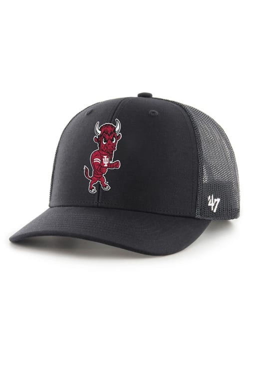 Product Details Product Details 47 Brand Trucker RFFront embroidered team logoMatching crown and visorNo inner buckram for added structuredContrast trucker meshPlastic snap closureCotton & Poly BlendCurved BillLow CrownRelaxedwipe clean with cloth or cleaning kitImported Officially Licensed This Black Hoosiers Adjustable Hat features a front embroidered team logo with back trucker mesh.