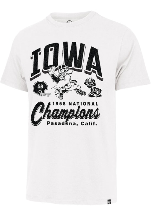 Support your Iowa Hawkeyes in this White Short Sleeve Fashion Tee! This 1958 National Champions Fashion T Shirt features a screenprint team name and mascot on front chest. Be ready to yell "Go Hawkeyes" when you wear this Hawkeyes Short Sleeve Fashion T Shirt in your favorite stadium or on the street.