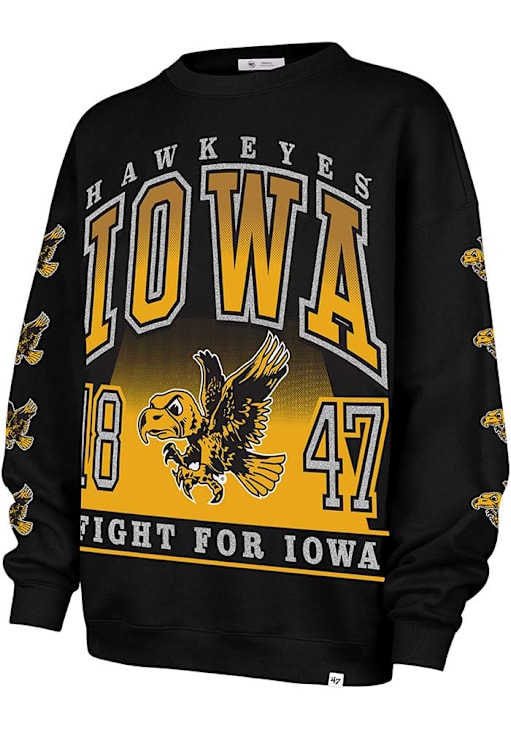 Gear up for the ultimate game day experience with this remarkable Iowa HawkeyesWomens Black Go Big Crew Sweatshirt! Designed with the true fan in mind, this Hawkeyes Long Sleeve Sweatshirt features a screen vintage print team logo and team name with glitter accents on center chest. Stay warm and comfortable with this Womens Hawkeyes Hawkeyes Crew Sweatshirt.