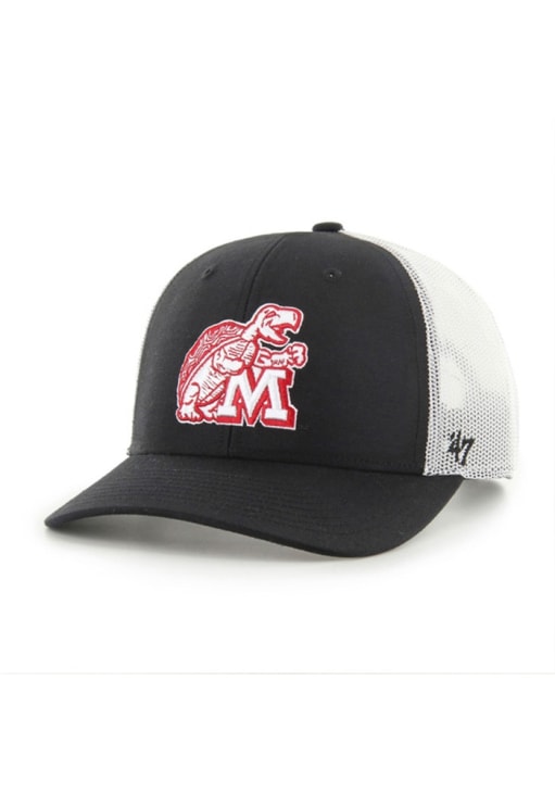 Product Details Product Details 47 Brand Trucker HatFront embroidered team logoMatching crown and visorContrast trucker meshSide 47 logoCotton/Poly BlendCurved BillLow CrownStructuredWipe clean with cloth or cleaning kitImported Officially Licensed This Black Terrapins Adjustable Hat features a team logo on front.