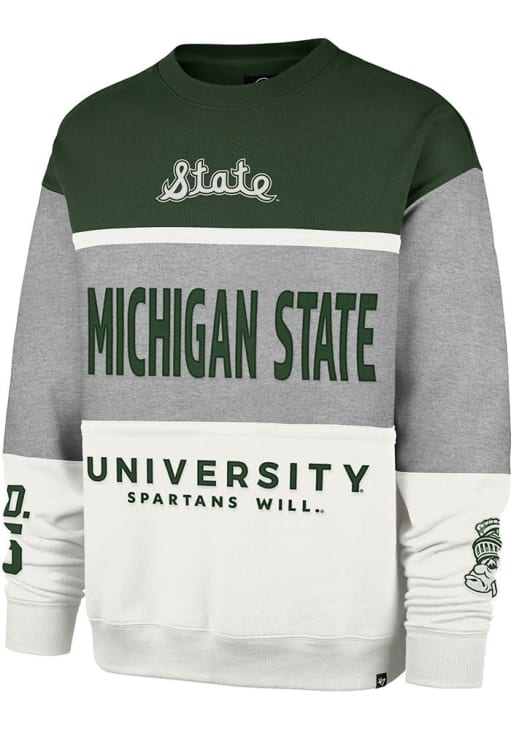 Gear up for the ultimate game day experience with this remarkable Michigan State SpartansMens Grey On Five Maximalist Crew Sweatshirt! Designed with the true fan in mind, this Spartans Long Sleeve Crew Sweatshirt features a embriodery and applique. Stay warm and comfortable with this Mens MSU Spartans Crew Sweatshirt.
