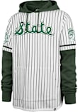 Mens Michigan State Spartans White 47 Double Header Pinstripe Long Sleeve Fashion Hood