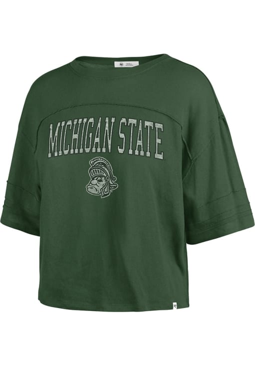 Display your team spirit with this remarkable Michigan State Spartans Green Stevie Short Sleeve T-Shirt! The MSU Short Sleeve Tee showcases a screen print team name and logo on center chest that truly sets it apart. Stand out from the crowd and proudly declare your allegiance to the Spartans with this exceptional Green MSU T-Shirt. Go Spartans!