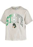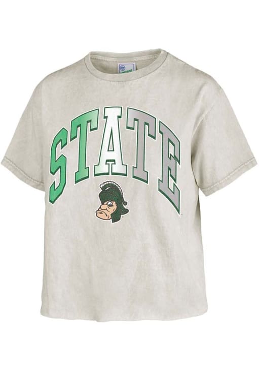 Display your team spirit with this remarkable Michigan State Spartans White Mineral Crop Short Sleeve T-Shirt! The MSU Short Sleeve Tee showcases a screen print team name and logo on center chest that truly sets it apart. Stand out from the crowd and proudly declare your allegiance to the Spartans with this exceptional White MSU T-Shirt. Go Spartans!