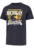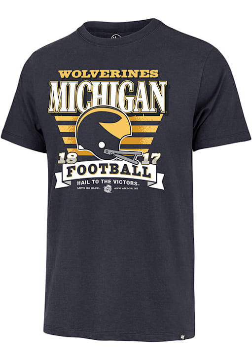 Support your Michigan Wolverines in this Blue Short Sleeve Fashion Tee! This Stripe Splash Football Fashion T Shirt features a screen print graphic on front chest. Be ready to yell "Go Michigan" when you wear this Michigan Short Sleeve Fashion T Shirt in your favorite stadium or on the street.