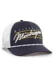 Product Details Product Details 47 Downburst TruckerFront team wordmark with team nickname script and stripingMulti-color ropeContrast meshbackSnap ClosureCOTTON/POLY BLENDCurved BillLow CrownLightly StructuredWipe clean with cloth or cleaning kitImported Officially Licensed This Blue Wolverines Adjustable Hat features a team logo on front.