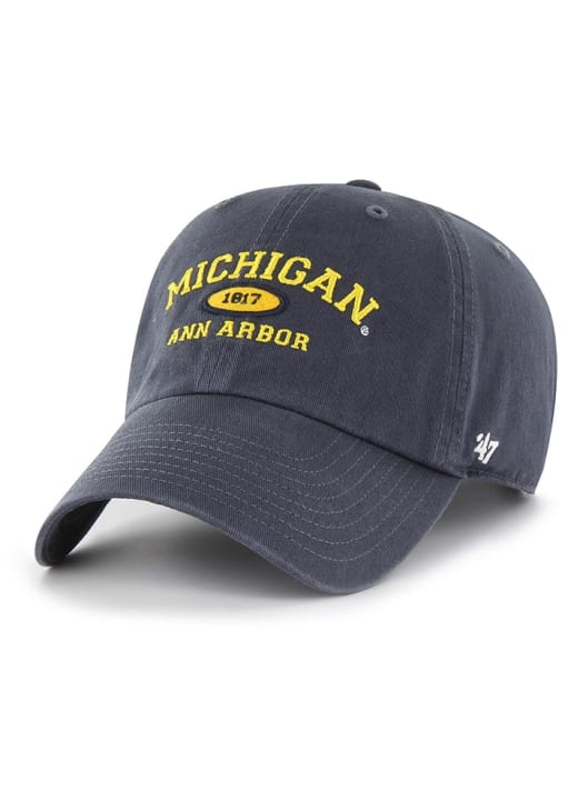 Product Details Product Details 47 Script Clean UpFront team logo6 panels with eyeletsFabric loop closureSide 47 LogoCOTTONCurved BillLow CrownLightly StructuredWipe clean with cloth or cleaning kitImported Officially Licensed This Blue Wolverines Adjustable Hat features a front embroidered team logo.