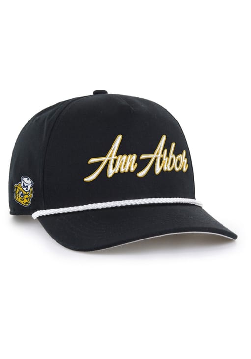 Product Details Product Details 47 - Overhand Script HitchTeam wordmark script on frontRope on visor47 brand logo on left hand side5 panel designCotton Poly BlendCurved BillHigh CrownStructuredWipe clean with cloth or cleaning kitImported Officially Licensed This Black Wolverines Adjustable Hat features a front embroidered team logo.