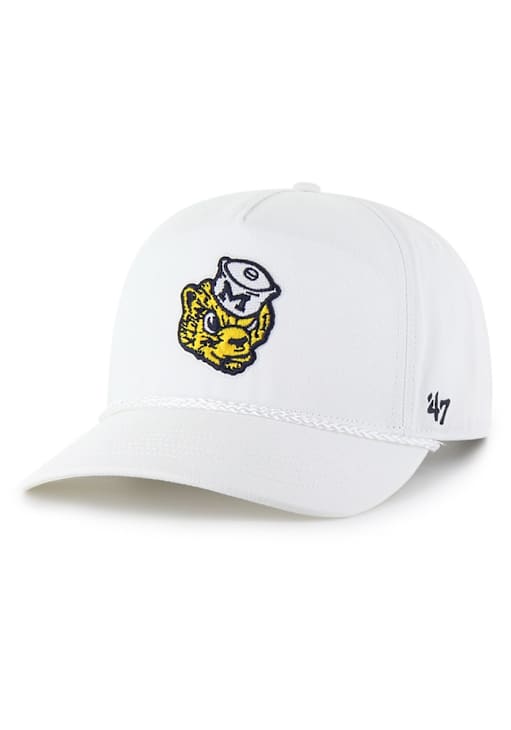 Product Details Product Details 47 Rope HitchFront team logoRope across visor5 panel pinched crownSide 47 LogoCOTTONCurved BillLow CrownStructuredWipe clean with cloth or cleaning kitImported Officially Licensed This White Wolverines Adjustable Hat features a front embroidered team logo.