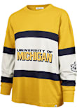 Show your Michigan Wolverines spirit in this Michigan Gold T-Shirt! This Michigan Breezyway Long Sleeve T-Shirt makes a great layer for cooler nights cheering on the Wolverines. Featuring a screen print team name center chest and logo on left arm, this Michigan Wolverines Long Sleeve LS Tee is an essential addition for every fan. Go Michigan!