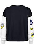 Show your Michigan Wolverines spirit in this Michigan Blue T-Shirt! This Michigan Badge Sydney Long Sleeve T-Shirt makes a great layer for cooler nights cheering on the Wolverines. Featuring a screen print teal logos on sleeves, this Michigan Wolverines Long Sleeve LS Tee is an essential addition for every fan. Go Michigan!