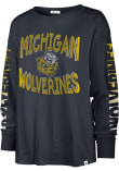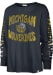 Show your Michigan Wolverines spirit in this Michigan Blue T-Shirt! This Michigan Cloud Nine Long Sleeve T-Shirt makes a great layer for cooler nights cheering on the Wolverines. Featuring a screen print team name and logo on center chest with screen print team name down sleeves, this Michigan Wolverines Long Sleeve LS Tee is an essential addition for every fan. Go Michigan!