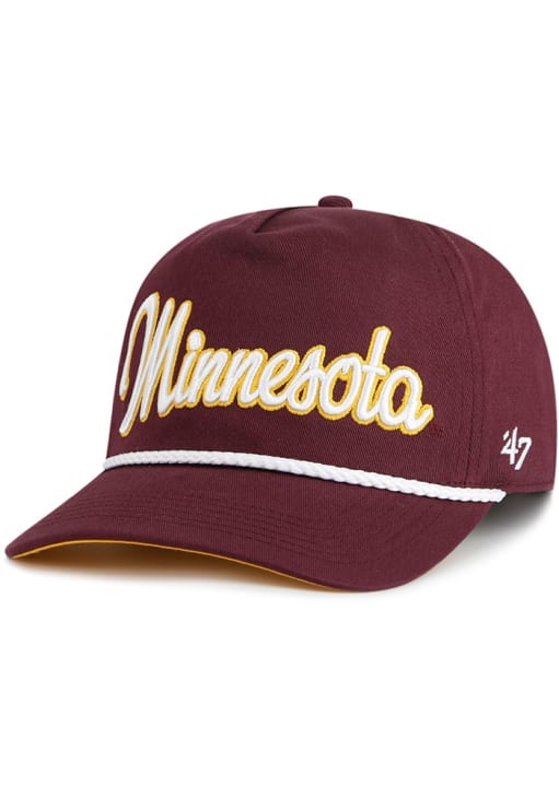 Product Details Product Details 47 - Overhand Script HitchTeam wordmark script on frontRope on visor47 brand logo on left hand side5 panel designCotton Poly BlendCurved BillHigh CrownStructuredWipe clean with cloth or cleaning kitImported Officially Licensed This Maroon Golden Gophers Adjustable Hat features a team logo on front.