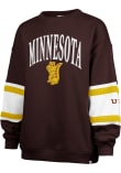 Gear up for the ultimate game day experience with this remarkable Minnesota Golden GophersWomens Maroon Steadfast Crew Sweatshirt! Designed with the true fan in mind, this Golden Gophers Long Sleeve Sweatshirt features a puff print team name and logo on center chest and logo on left arm. Stay warm and comfortable with this Womens Minnesota Golden Gophers Crew Sweatshirt.