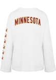 Show your Minnesota Golden Gophers spirit in this Minnesota White T-Shirt! This Minnesota Ditto Long Sleeve T-Shirt makes a great layer for cooler nights cheering on the Golden Gophers. Featuring a screen print team name on right chest and center back team logo down left sleeve, this Minnesota Golden Gophers Long Sleeve LS Tee is an essential addition for every fan. Fight, Gophers!