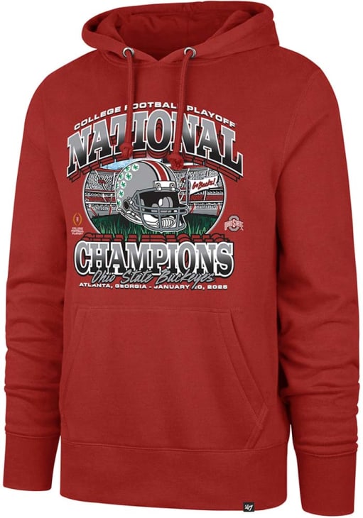 Mens Ohio State Buckeyes Red 47 Football 2024 National Champions Headlinie Long Sleeve Fashion Hoo..