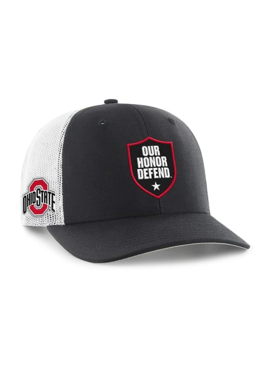 47 Black Ohio State Buckeyes Our Honor Defend Trucker Adjustable Hat