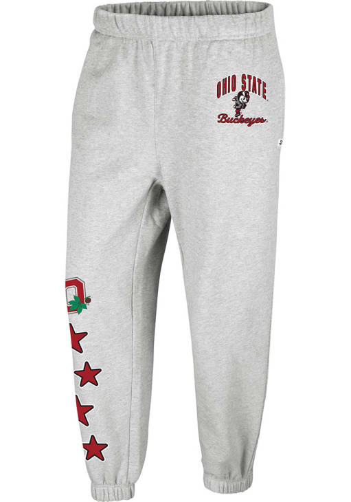 Cozy up in these Ohio State Buckeyes Womens Ash Seeing Stars Sweatpants! Whether you're lounging at home or cheering at the game, these The Ohio State University Buckeyes Sweats are a great way to show your Buckeyes support in comfort. These Ohio State Buckeyes Sweatpants feature a left hip screen print team name and logo.