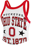 Elevate your tailgating style with this Ohio State Buckeyes Womens Tank Top. Stay fashionable and comfortable in the refreshing White Energize Sleeveless Shirt. Discover the enticing details of this The Ohio State University Tank Top, showcasing a screen vintage print team logo and team name with silver glitter on center chest that's sure to impress.