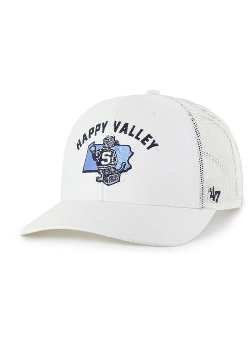 Product Details Product Details 47 Brand Trucker HatFront embroidered team logoMatching crown and visorContrast trucker meshSide 47 logoCotton/Poly BlendCurved BillLow CrownStructuredWipe clean with cloth or cleaning kitImported Officially Licensed This White Nittany Lions Adjustable Hat features a Front embroidered vault team logo.