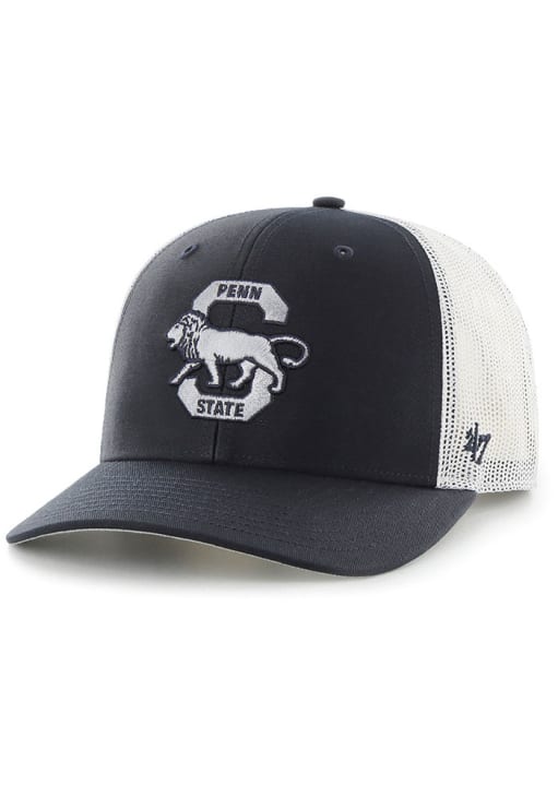 Product Details Product Details 47 Brand Trucker HatFront embroidered team logoMatching crown and visorContrast trucker meshSide 47 logoCotton/Poly BlendCurved BillLow CrownStructuredWipe clean with cloth or cleaning kitImported Officially Licensed This Navy Blue Nittany Lions Adjustable Hat features a front embroidered retro team logo on a matching crown and visor with contrast trucker mesh.