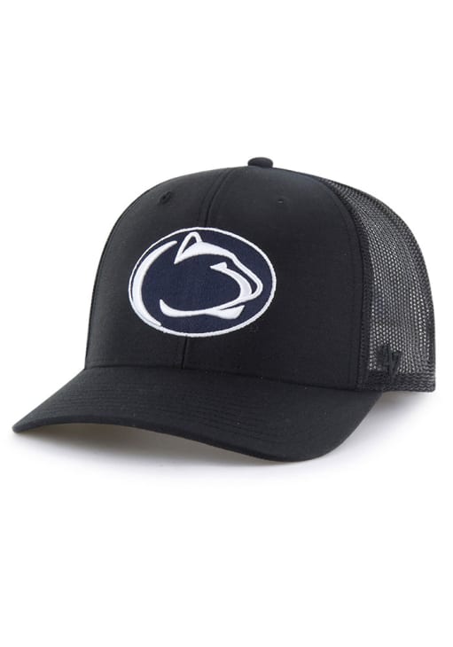 Product Details Product Details 47 Trucker Black WhiteFront embroidered team logoMatching crown and visorTrucker mesh on back and side panelsSide 47 logoCOTTON/POLY BLENDCurved BillLow CrownStructuredWipe clean with cloth or cleaning kitImported Officially Licensed This Black Nittany Lions Adjustable Hat features a front embroidered team logo on a matching structured crown and visor with contrast meshback.
