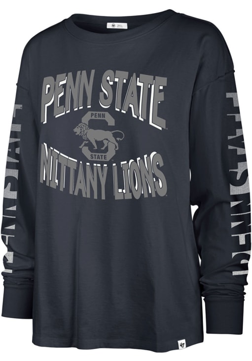 Show your Penn State Nittany Lions spirit in this Penn State Navy Blue T-Shirt! This Penn State Cloud Nine Long Sleeve T-Shirt makes a great layer for cooler nights cheering on the Nittany Lions. Featuring a screen print team name and logo on center chest with screen print team name down sleeves, this Penn State Nittany Lions Long Sleeve LS Tee is an essential addition for every fan. Go Lions!