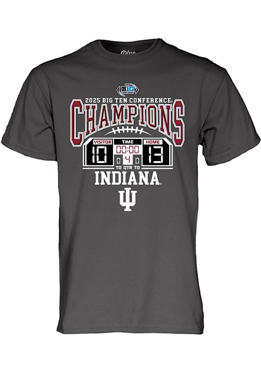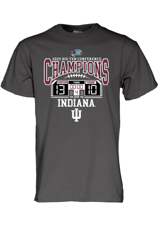 Display your team spirit with this remarkable Indiana Hoosiers Blue 84 Charcoal 2025 Big Ten Football Champions Score Short Sleeve T Shirt! The Indiana Short Sleeve Tee showcases a screen print of team graphic on front chest that truly sets it apart. Stand out from the crowd and proudly declare your allegiance to the Hoosiers with this exceptional Charcoal Indiana T Shirt. Indiana, Our Indiana!