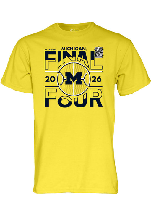 Display your team spirit with this remarkable Michigan Wolverines Blue 84 Yellow 2026 Men's Basketball Final Four Bound Short Sleeve T Shirt! The Michigan Short Sleeve Tee showcases a screen print of team graphic on front chest that truly sets it apart. Stand out from the crowd and proudly declare your allegiance to the Wolverines with this exceptional Yellow Michigan T Shirt. Go Michigan!