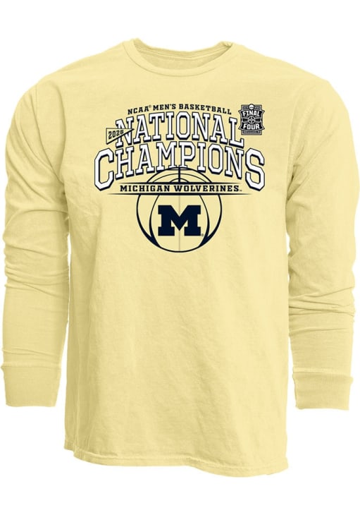 Show your Michigan Wolverines spirit in this Michigan Yellow T Shirt! This Michigan 2026 Men's Basketball National Champions Long Sleeve T Shirt makes a great layer for cooler nights cheering on the Wolverines. Featuring a screenprint team graphics, this Michigan Wolverines Long Sleeve Tee is an essential addition for every fan. Go Michigan!