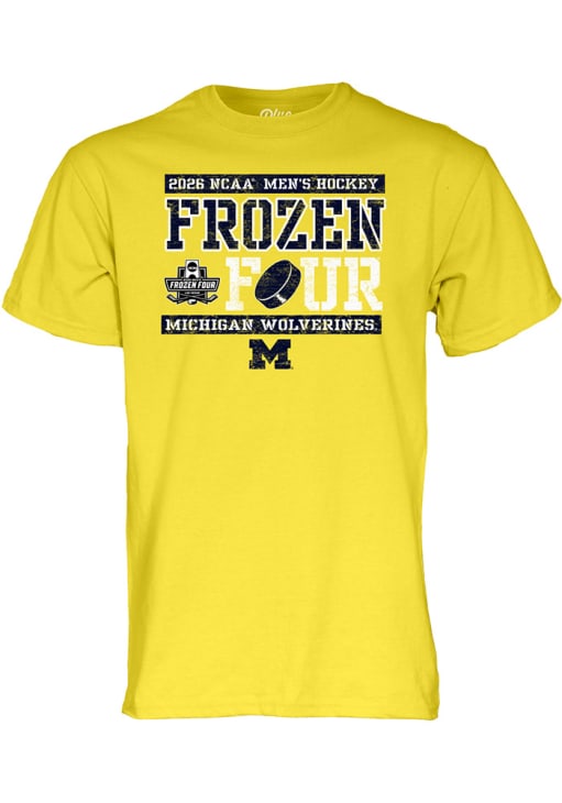 Display your team spirit with this remarkable Michigan Wolverines Blue 84 Yellow 2026 Men's Ice Hockey Frozen Four Bound Short Sleeve T Shirt! The Michigan Short Sleeve Tee showcases a screen print of team graphic on front chest that truly sets it apart. Stand out from the crowd and proudly declare your allegiance to the Wolverines with this exceptional Yellow Michigan T Shirt. Go Michigan!