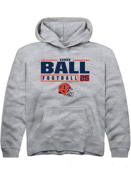Size Chart for Aaron Ball Rally Youth Grey Illinois Fighting Illini NIL Stacked Box Long Sleeve Hooded Sweatshirt