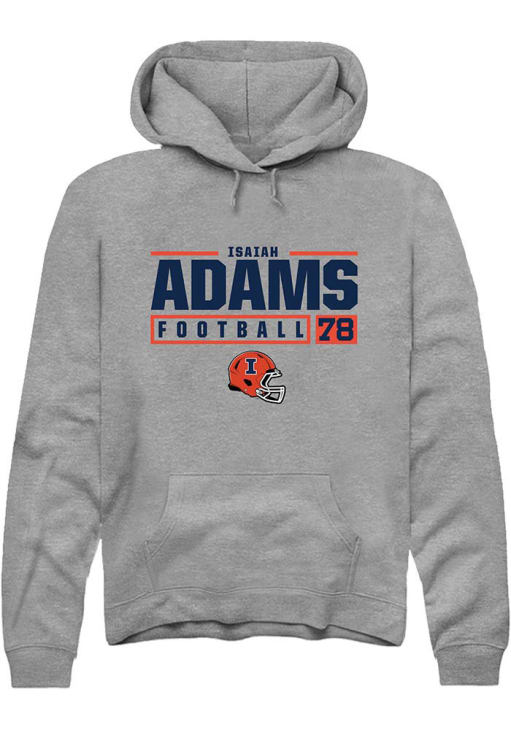 Isaiah Adams Rally Mens Graphite Illinois Fighting Illini NIL Stacked Box Hooded Sweatshirt