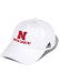 This White Cornhuskers Adjustable Hat features a front embroidered team logo.