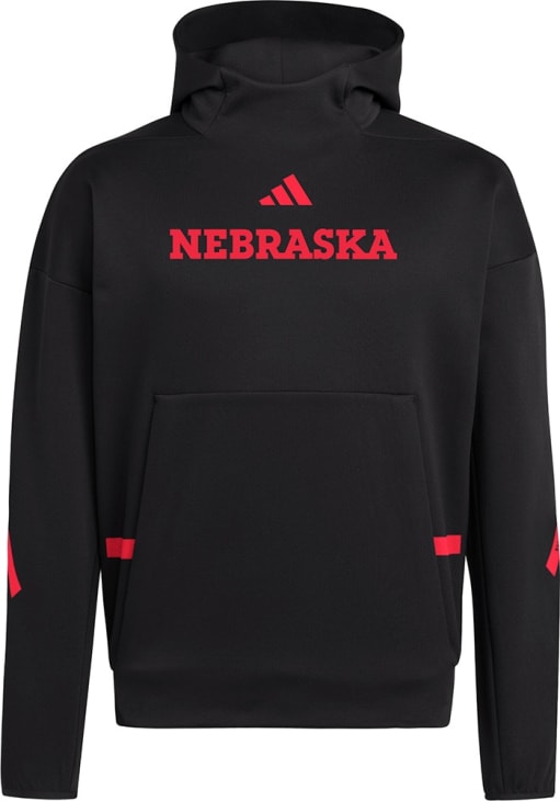 Size Chart for Mens Nebraska Cornhuskers Black Adidas ZNE Long Sleeve Hoodie