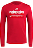 Show your Nebraska Cornhuskers spirit in this Nebraska Red T Shirt! This Nebraska Heritage Long Sleeve T Shirt makes a great layer for cooler nights cheering on the Cornhuskers. Featuring a screen print team logo on front chest, this Nebraska Cornhuskers Long Sleeve Tee is an essential addition for every fan. Go Huskers!
