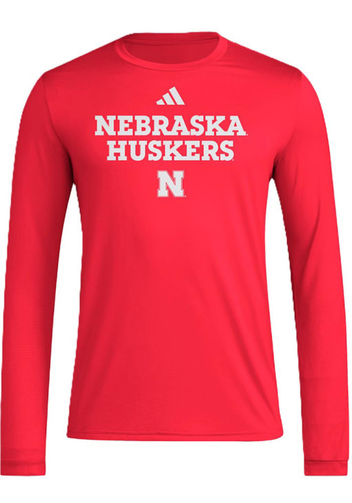 Size Chart for Mens Nebraska Cornhuskers Red Adidas Locker Wordmark Long Sleeve T-Shirt