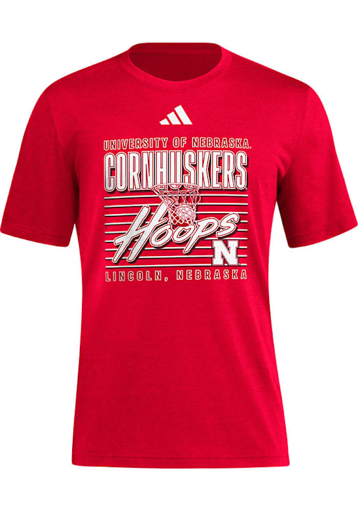 Display your team spirit with this remarkable Nebraska Cornhuskers Adidas Short Sleeve T Shirt! The Nebraska Short Sleeve Tee showcases a ADI RED CORNHSKRS HOOPS SS B that truly sets it apart. Stand out from the crowd and proudly declare your allegiance to the Cornhuskers with this exceptional Nebraska T Shirt. Go Huskers!