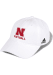 This White Cornhuskers Adjustable Hat features a front embroidered team logo.