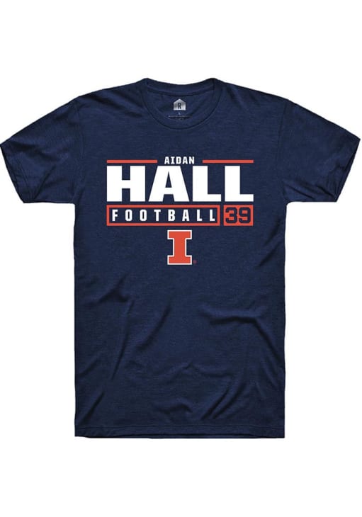 Aidan Hall Navy Blue Illinois Fighting Illini NIL Stacked Box Short Sleeve T Shirt