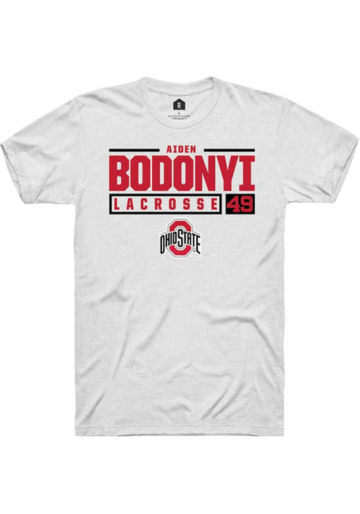 Display your team spirit with this remarkable Ohio State Buckeyes White NIL Stacked Box Short Sleeve T Shirt! The The Ohio State University Short Sleeve Tee showcases a custom graphic with player's name and number that truly sets it apart. Stand out from the crowd and proudly declare your allegiance to the Buckeyes with this exceptional White The Ohio State University T Shirt. Go Buckeyes!