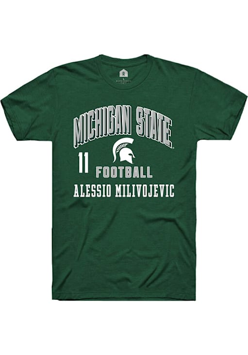 Display your team spirit with this remarkable Michigan State Spartans Green NIL Arch Logo Short Sleeve T Shirt! The MSU Short Sleeve Tee showcases a NIL graphic that truly sets it apart. Stand out from the crowd and proudly declare your allegiance to the Spartans with this exceptional Green MSU T Shirt. Go Spartans!