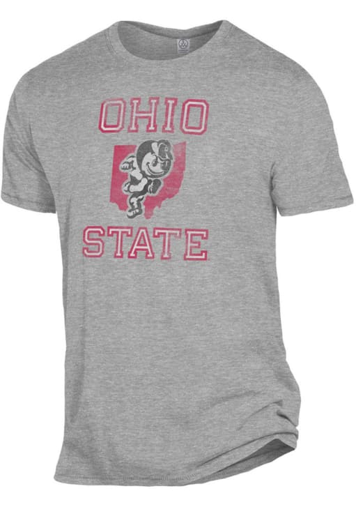 Support your Ohio State Buckeyes in this Grey Short Sleeve Fashion Tee! This Keeper Version Fashion T Shirt features a distressed screen print of "Ohio State" with Brutus and state shape beneath. Be ready to yell "Go Buckeyes" when you wear this The Ohio State University Short Sleeve Fashion T Shirt in your favorite stadium or on the street.