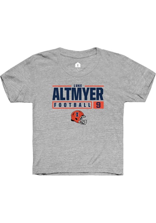 Luke Altmyer Rally Youth Grey Illinois Fighting Illini NIL Stacked Box Short Sleeve T-Shirt