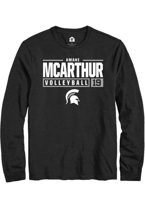Amani McArthur Rally Mens Black Michigan State Spartans NIL Stacked Box Tee