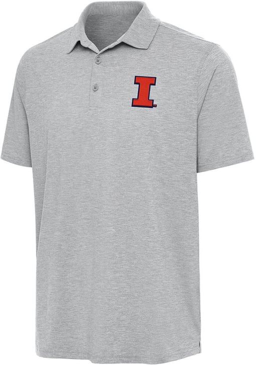 Mens Illinois Fighting Illini Grey Antigua Par 3 Short Sleeve Polo Shirt